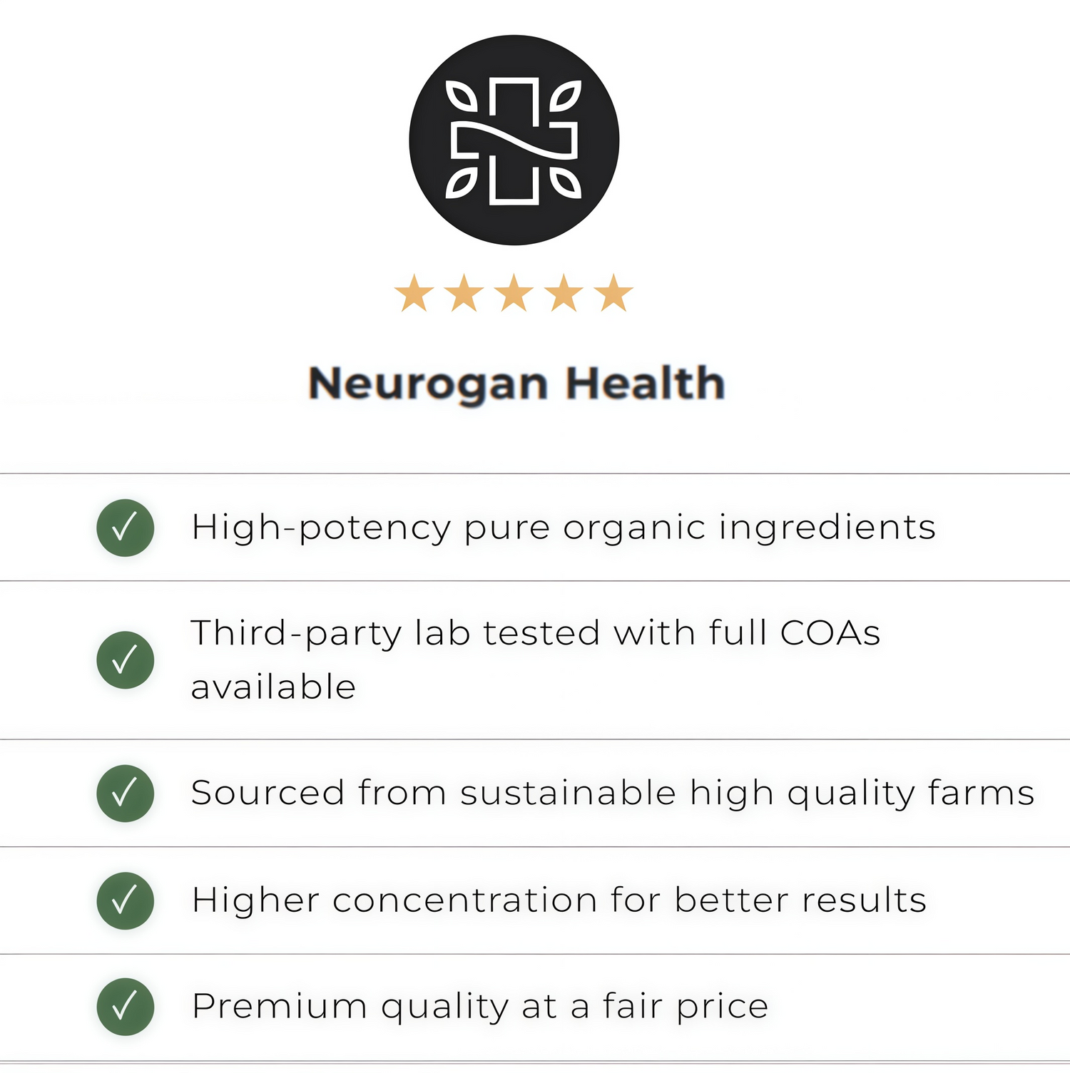 At Neurogan Health, we believe in transparency and quality. Our products are crafted with the highest standards,
